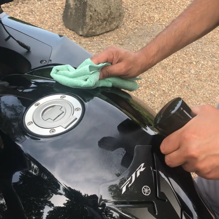 3 - Once you have cleaned the area, use the Green dry microfibre cloth to buff the surface to a shine.