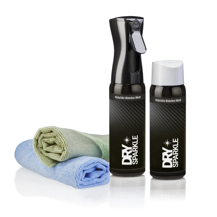 Looking for a powerful and effective way to clean your motorbike? Our waterless cleaner is the ultimate solution. Formulated with a blend of polymers and surface active ingredients, our cleaner easily removes layers of grime and debonds it from the surface, making it easy to remove with a microfibre cloth. Plus, our unique formula creates a low friction surface that prevents scratching, protecting your motorbike's finish and leaving it looking like new. When finished, our waterless wash leaves behind a buffable polymer that gives a shine when buffed. With our waterless cleaner, you can achieve a thorough and professional clean every time, without damaging your motorbike's finish. Try it and see the difference for yourself!