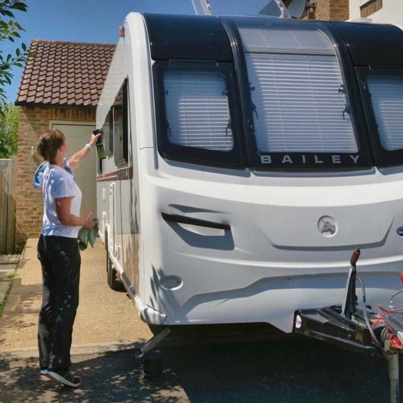 Our waterless caravan cleaner is the ultimate solution for caravan owners who want an easy, convenient, and effective way to clean their vehicle without the need of a water source. Formulated with a 100% biodegradable solution, our cleaner leaves a sparkling finish and protects your caravan's finish, all with an easy to use, ergonomicaly designed bottle.